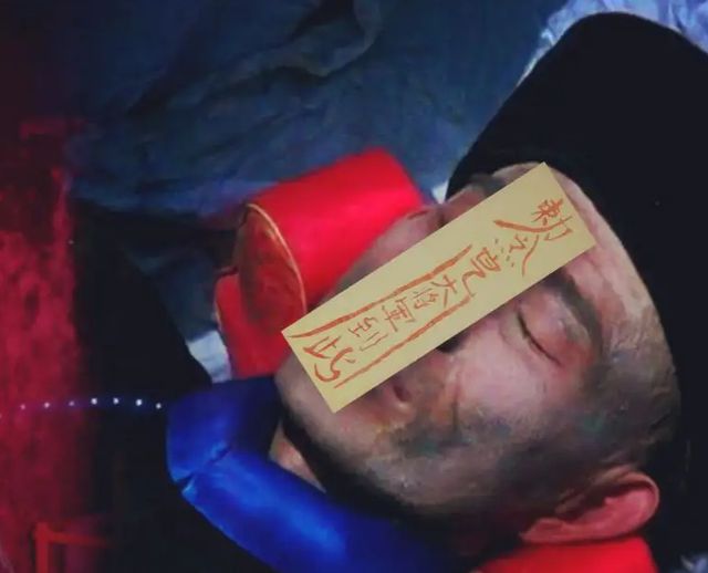 儿子身上套着连体泳衣,身上穿着红色连衣裙,脚上悬挂着秤砣,浑身被捆绑在房梁上,手脚都被死死地绑住。这种离奇的死法绝对不可能是自杀,单凭自己他是无法做到这种捆绑方式的,在法医验尸的时候,发现死者头部有着轻伤,而眉心处有一个针眼,并且在他临死前还曾经在地上跪爬过。这些都被民间贯上了阴阳说,十分吓人。