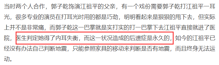 后来医生诊断她被打成了脑震荡,还患有内耳失衡,这一后遗症是永久性的。江祖平也无法剧烈运动,不能像从前那样正常演戏。