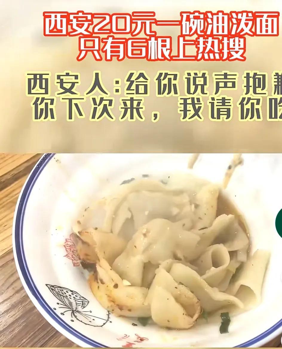 女子吐槽西安20元的油泼面仅六根上热搜。